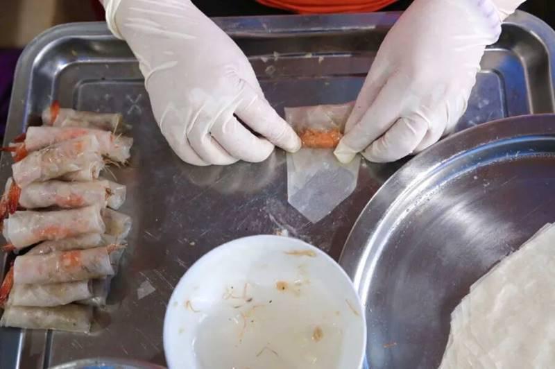 Bước quan trọng nhất là cuộn bánh tráng: đặt một lượng nhân vừa đủ lên tờ bánh tráng đã được làm ẩm nhẹ, cuộn chặt tay để nhân không bị bung ra khi chiên. Khi chiên ngập dầu ở lửa vừa, cần lăn đều tay để chả ram chín vàng đều các mặt. Bí quyết để có lớp vỏ giòn rụm hoàn hảo là chiên hai lần: lần đầu ở lửa vừa để chín nhân, lần hai tăng lửa để vỏ bánh tráng phồng giòn và có màu vàng óng hấp dẫn.